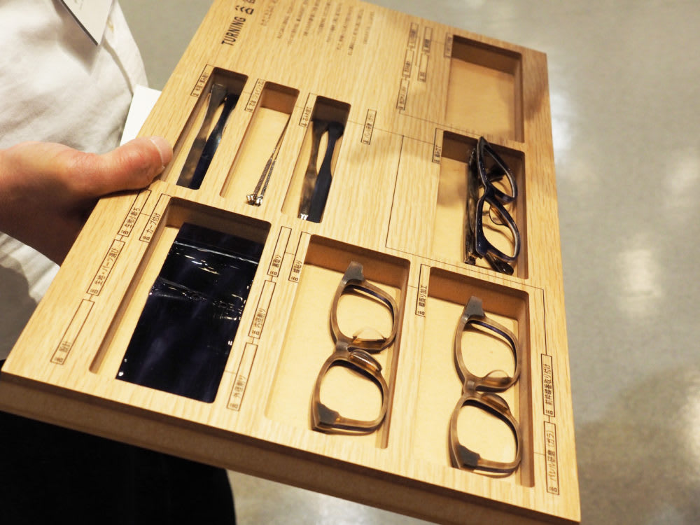 眼鏡ができるまでの作業工程が一目で分かるようにデザインされた優れもの。