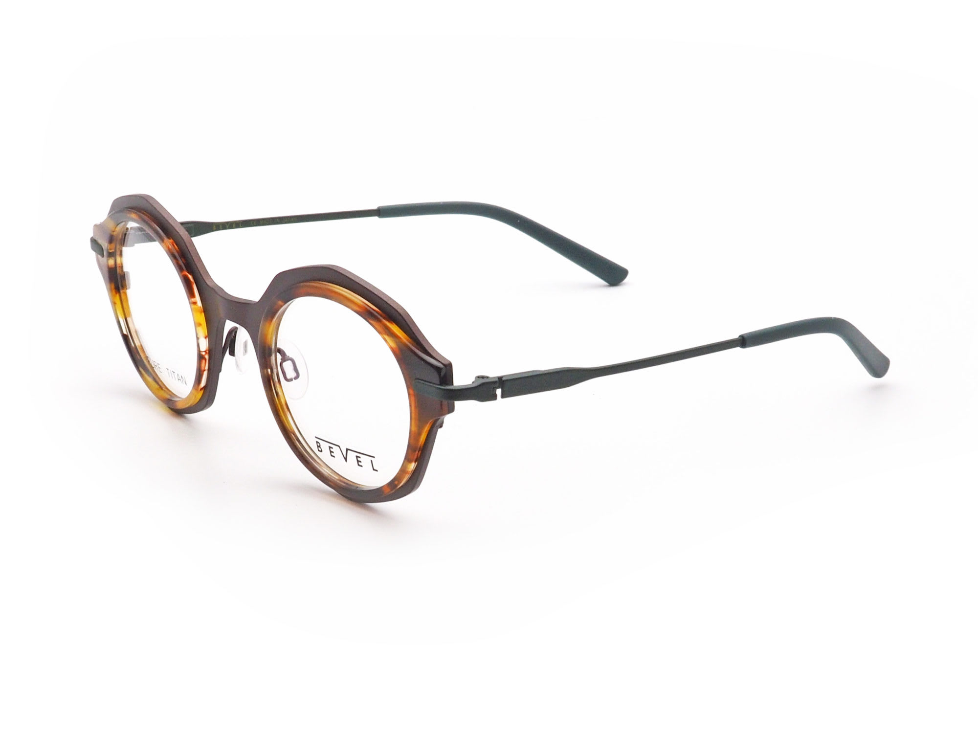 ブリッジに向かって太くなる濃いお色のチタンリムはお顔立ちがはっきりし、シェーディングのような効果を生み出します。