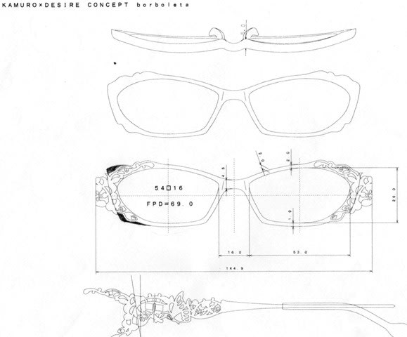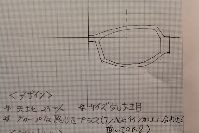 それを小野寺さんに見せ、その中からヨロイとテンプルは元の金型を使うので実現出来そうなデザインのモノを参考に再び書いて貰いました。それがこれです。