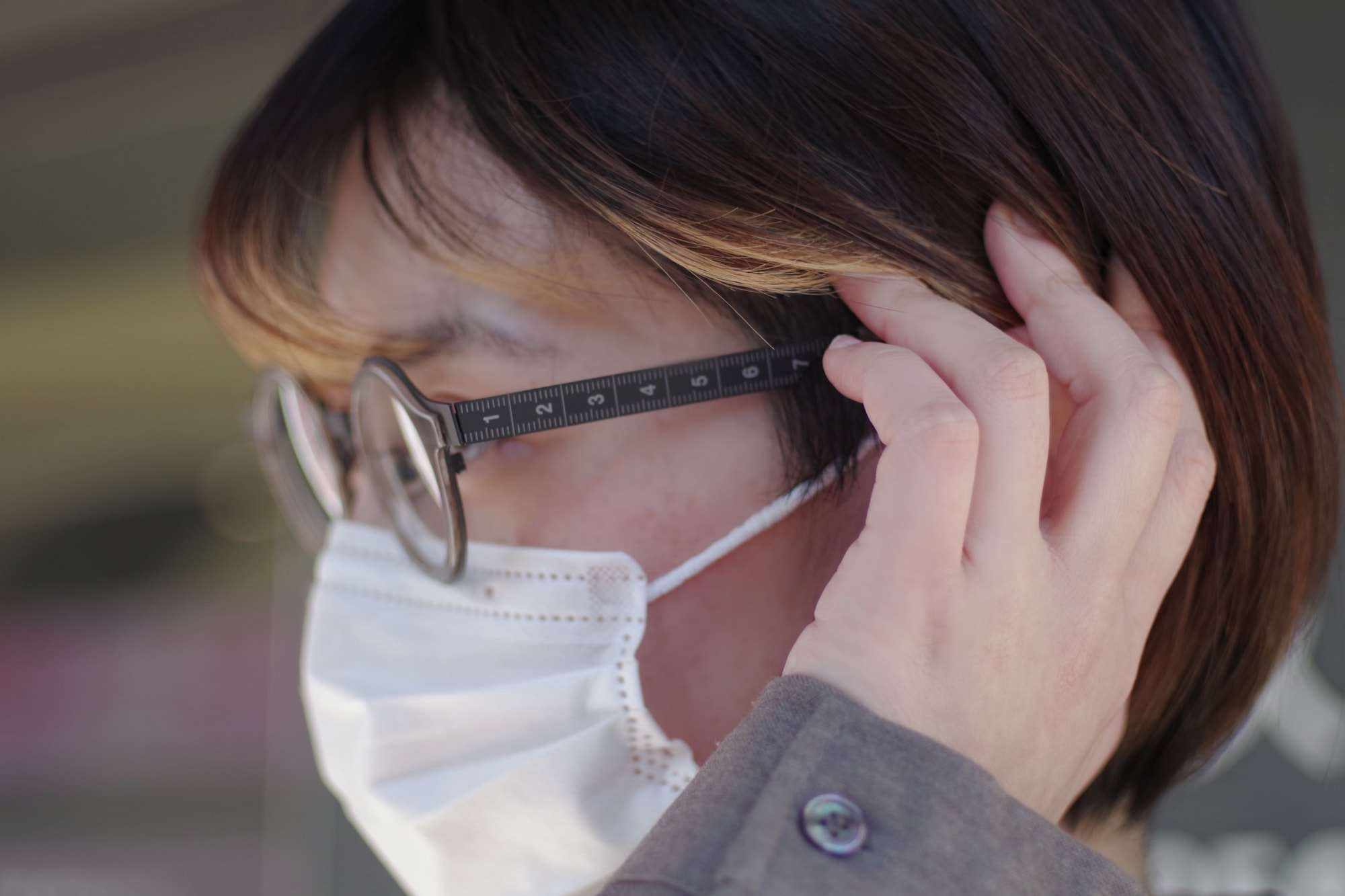 テンプル部分にはモデル名にもなっているメジャーの目盛りが。
