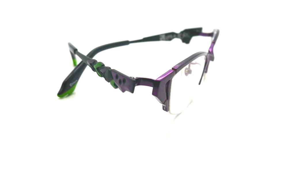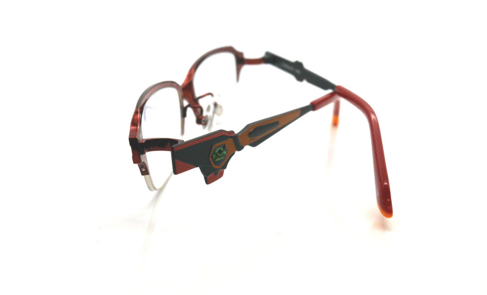 テンプルは左右でそれぞれ、エヴァ初号機の腕や胴体を思わせるデザインとなっています。